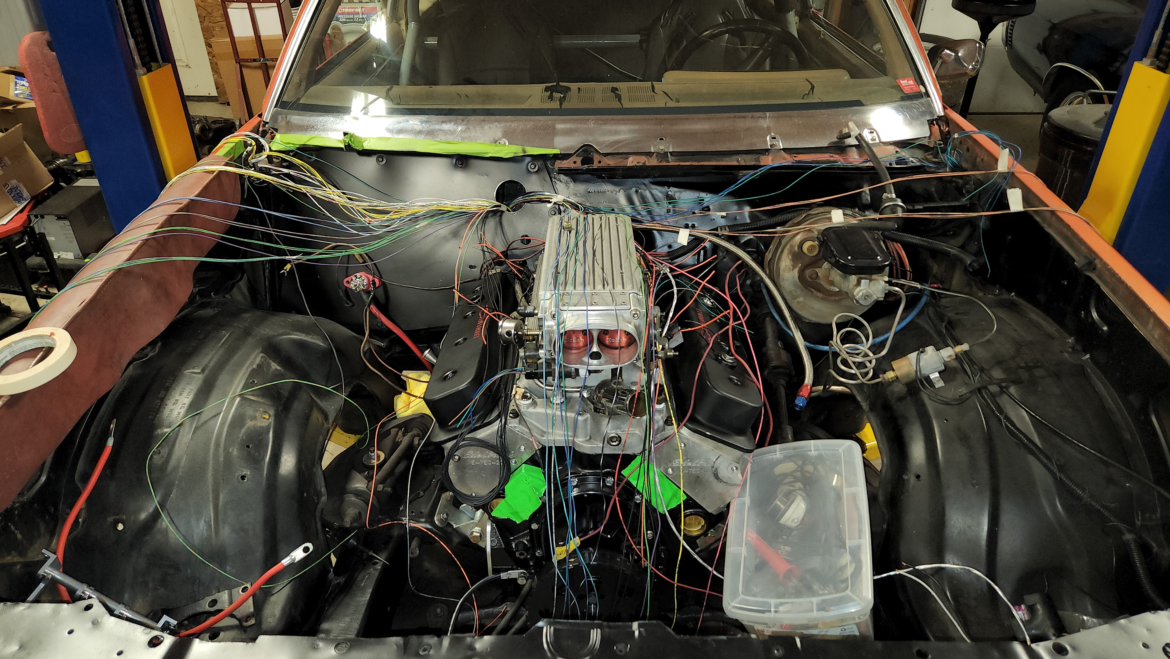 So I finally got the Chevelle put back together, so Maliboost has been moved into the lift bay.
