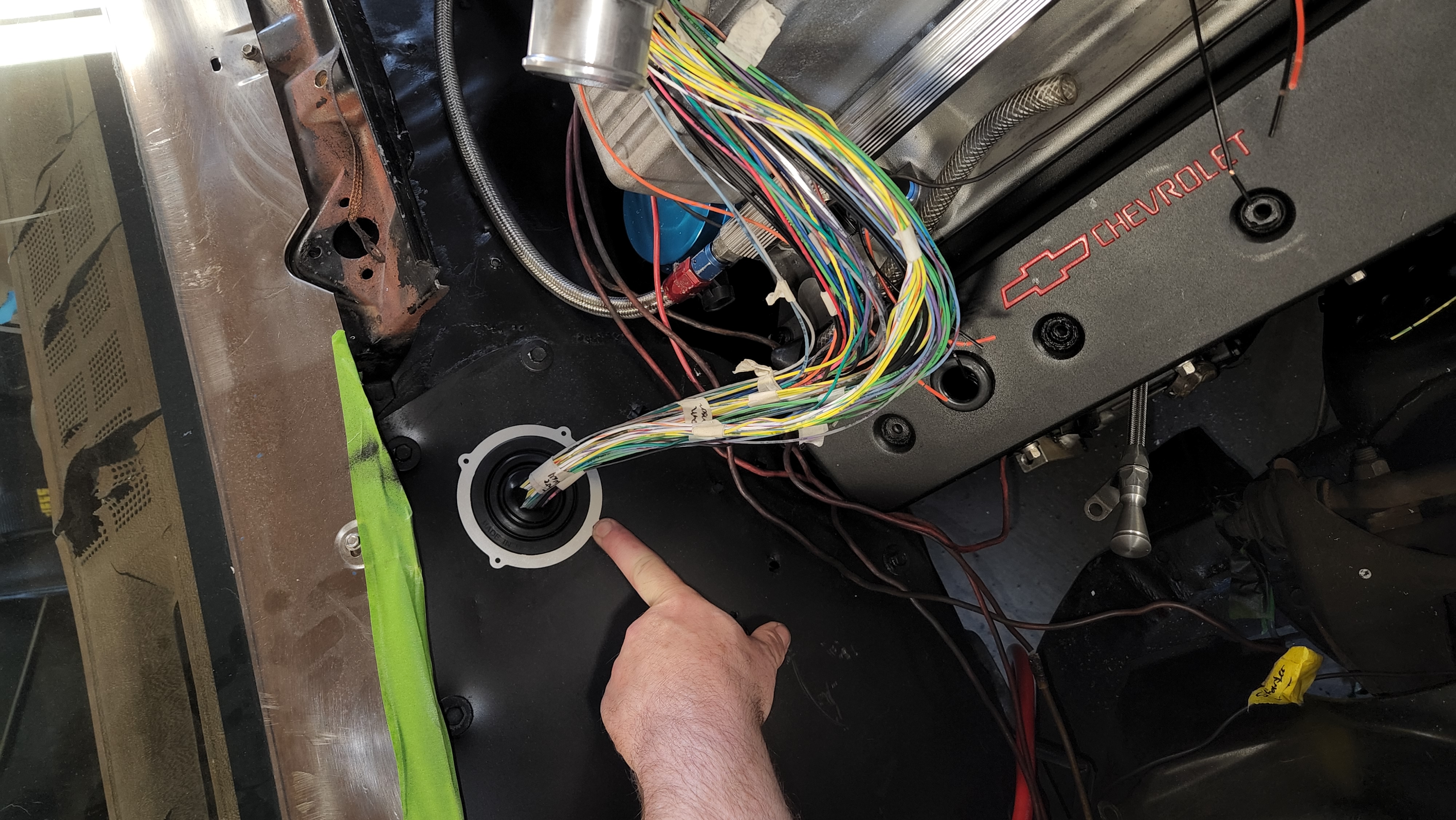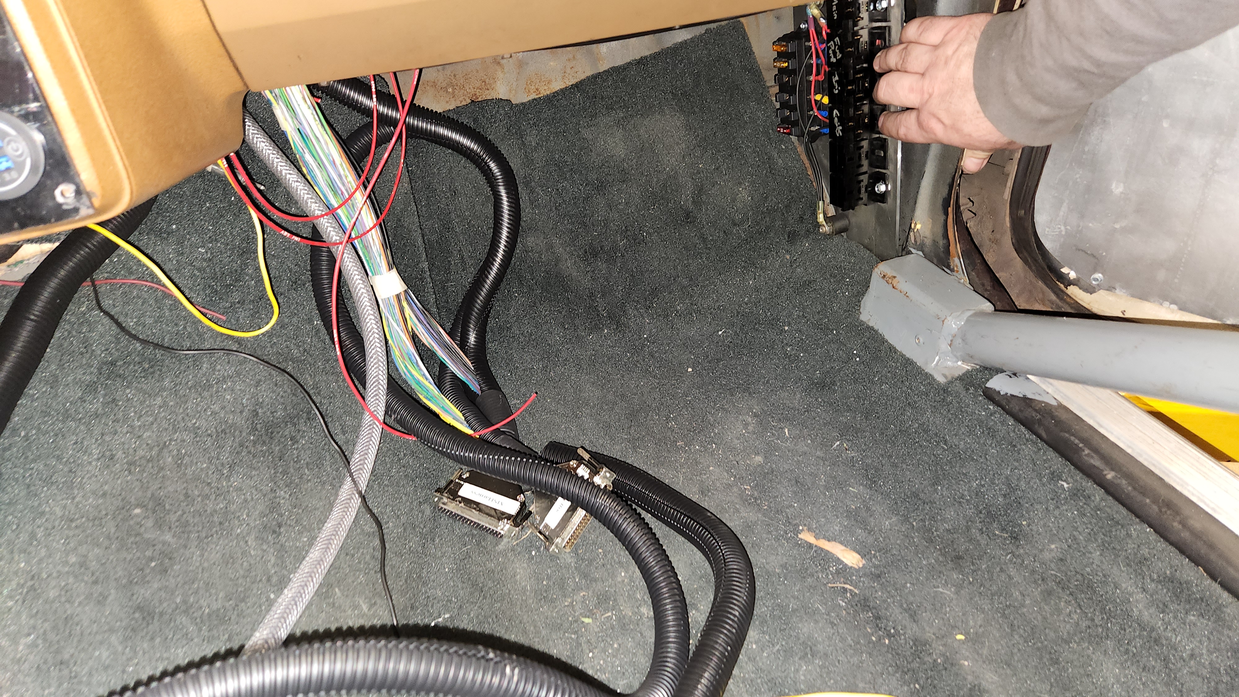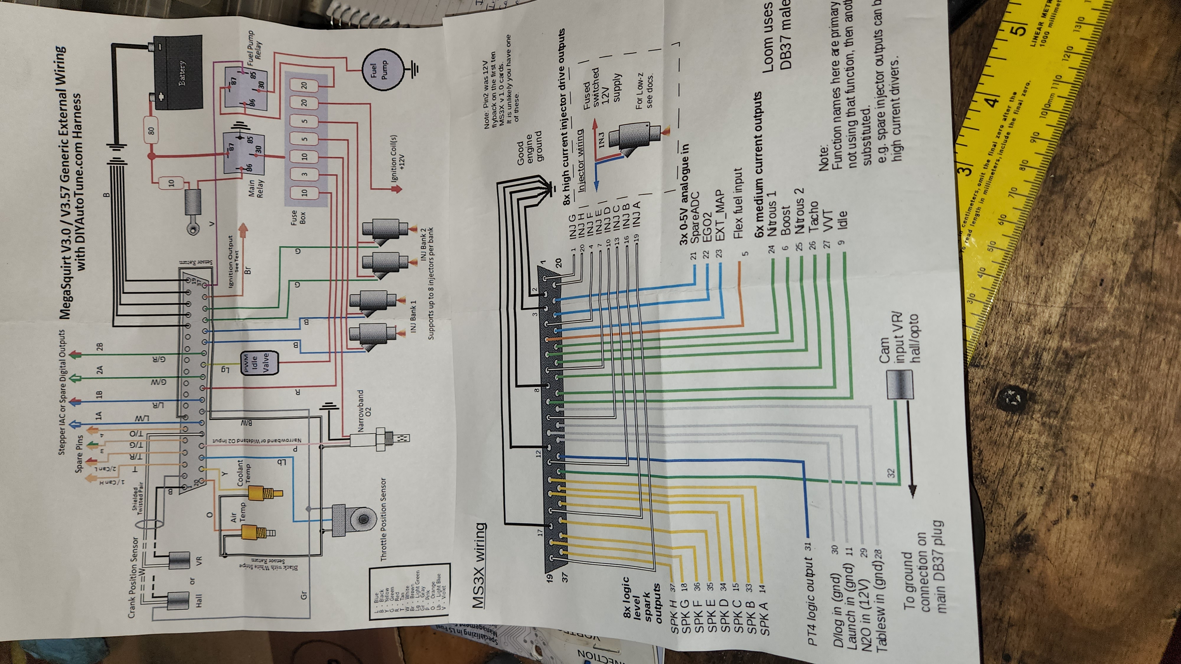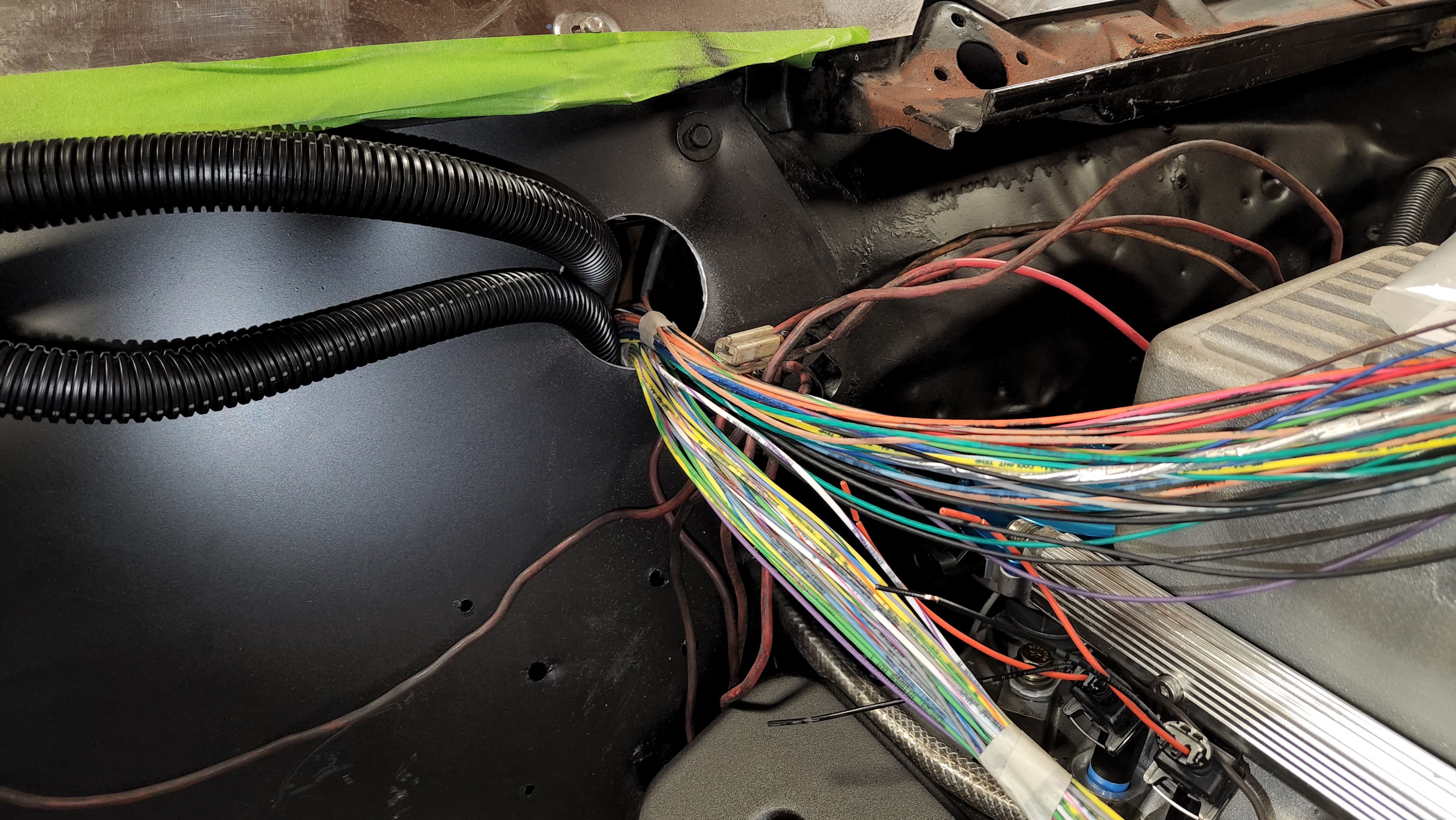 Also, thanks to Paul for the assist on the hole saw, I can now start working on all the EFI wiring. I ran both the MS3 & MS3X DB37 plugs into the hole, located the ECU where it's going to be. Then it was divide and conquer.