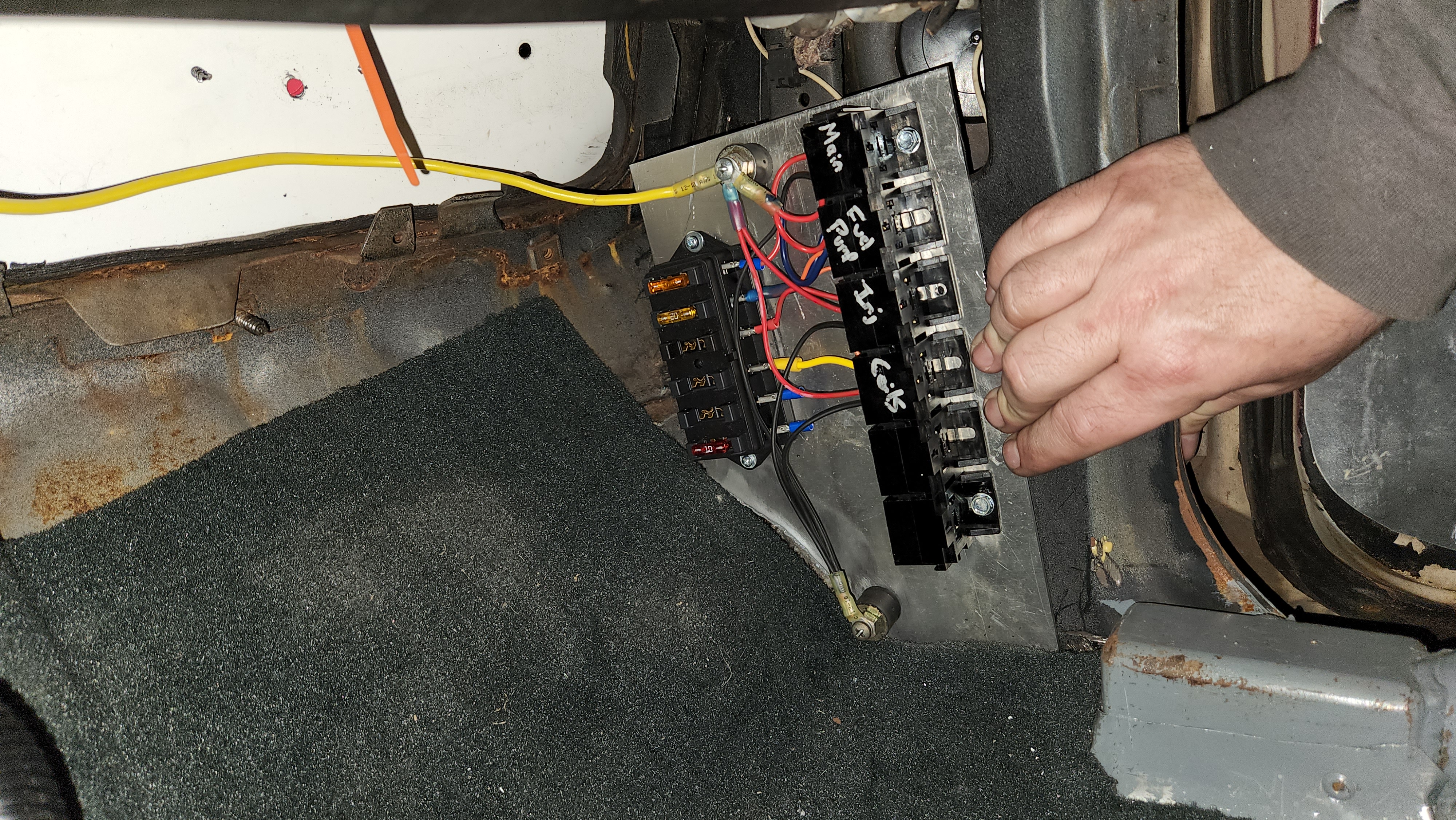 I got the battery wired up with the remote safety switch. The main ground is temporary, as I don't have enough black 1/0 cable to get where I want. I have headlights, taillights, license plate light, and 4-way flashers. But no turn signals. Not sure about brake lights.
