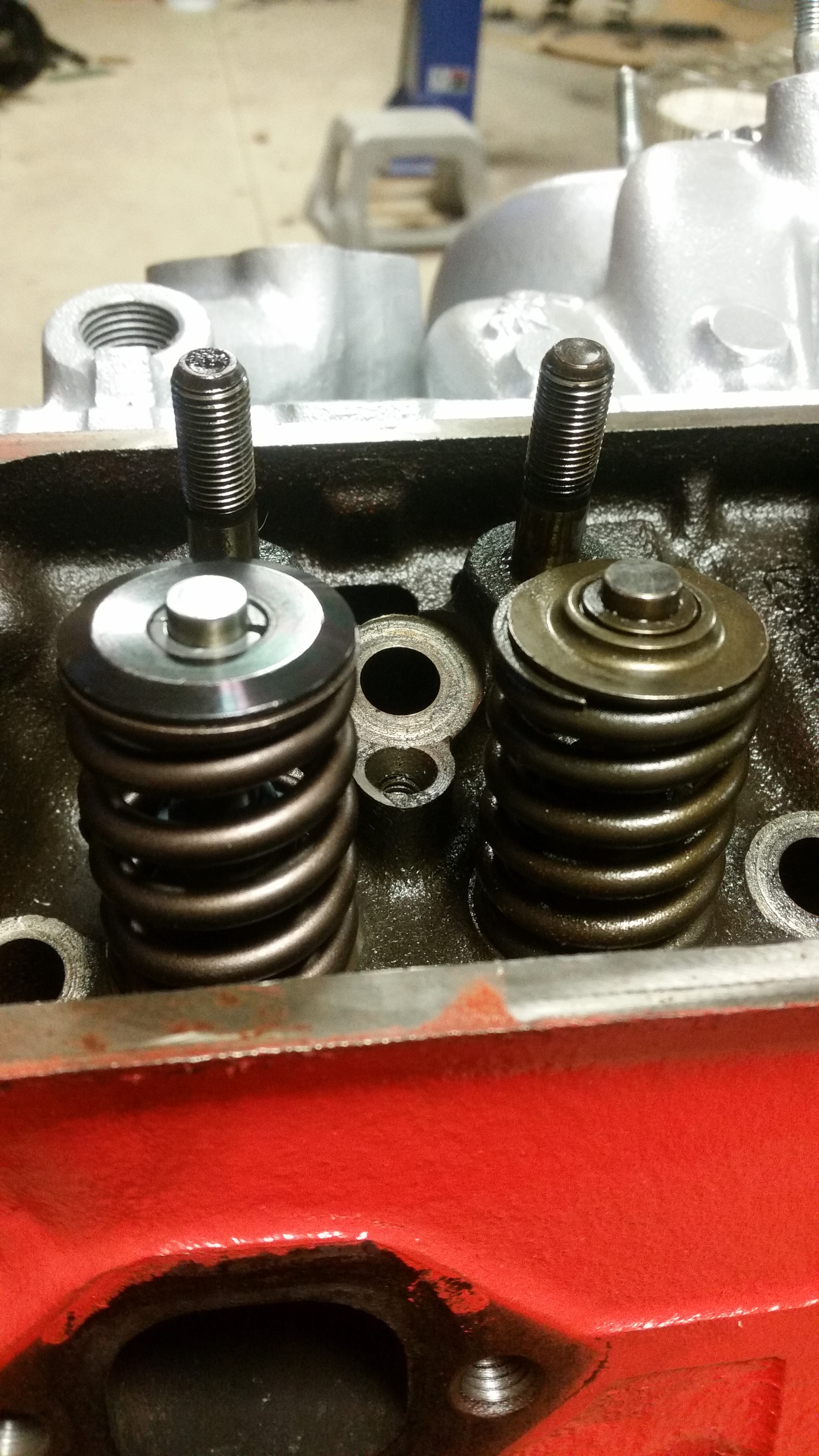 So it was a bad news/good news weekend. The bad news is that my valvesprings arrived Friday, but they're the wrong ones. And the right ones are on factory backorder, which means it could be a while. They said there might be 1 set left, they will check on Monday. So, I couldn't finish the heads.