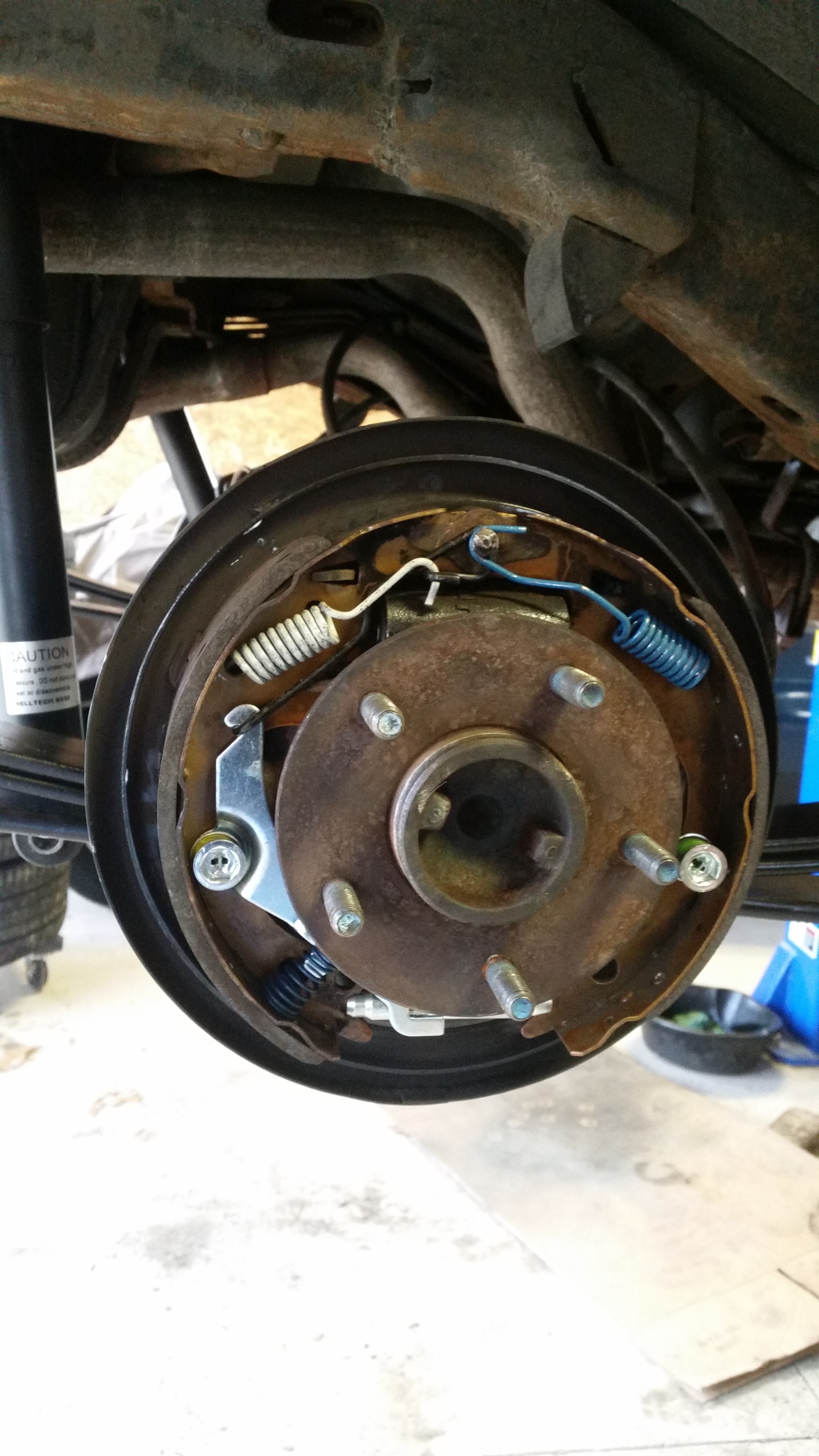 Not sure what this old rearend came from. The way the backing plates were held on is nothing like I've seen before. Also, the drums required for the new '03 rearend are a little bigger, so I need to get some new drums. Will probably have to get some new brake lines too.