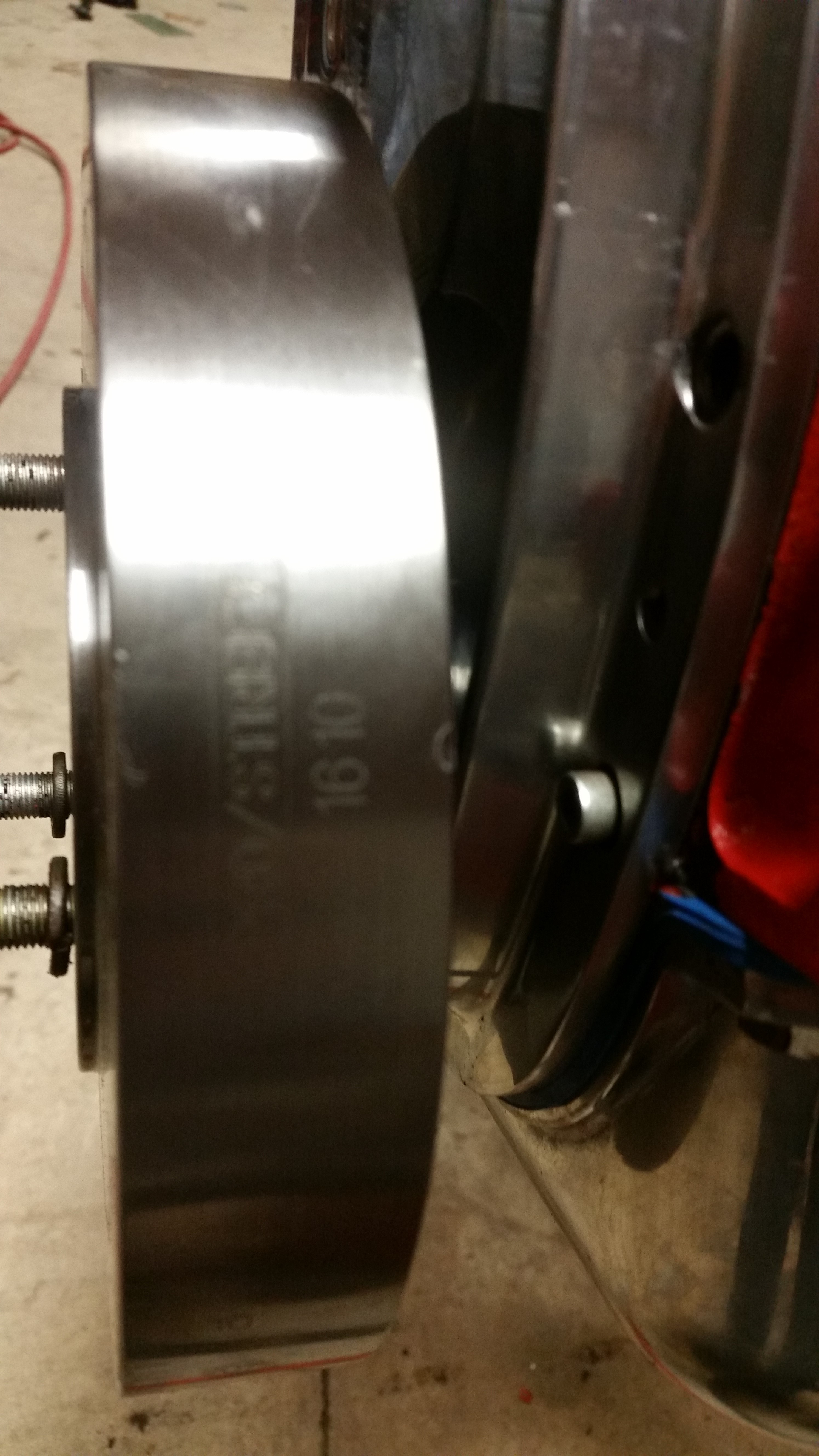 "Use stupid parts, get stuck doing stupid mods." -- so this whole project started off with me wanting to use up as many parts in my inventory as I could, which included the finned aluminum oil pan & aluminum timing cover. These were pieces that didn't work on my 400 years ago (to be fair, they didn't list 400 in the description). Anyway, I put them on this 350 and no issues -- until I went to put the timing pointer on. The flange on the timing cover is probably 1/4-3/8" thick -- much thicker than stock stamped steel. It screws up the mounting of the timing pointer. A stock pointer was overhanging the balancer, so it would be impossible to read. SO, I bought a trick looking Moroso piece with a little needle for the pointer. With the shiny cover, and pointer, I figured a stock balancer would look a little crummy, so I found a replacement that matched visually, and was fairly inexpensive at $60. Problem solved, right? Wrong.