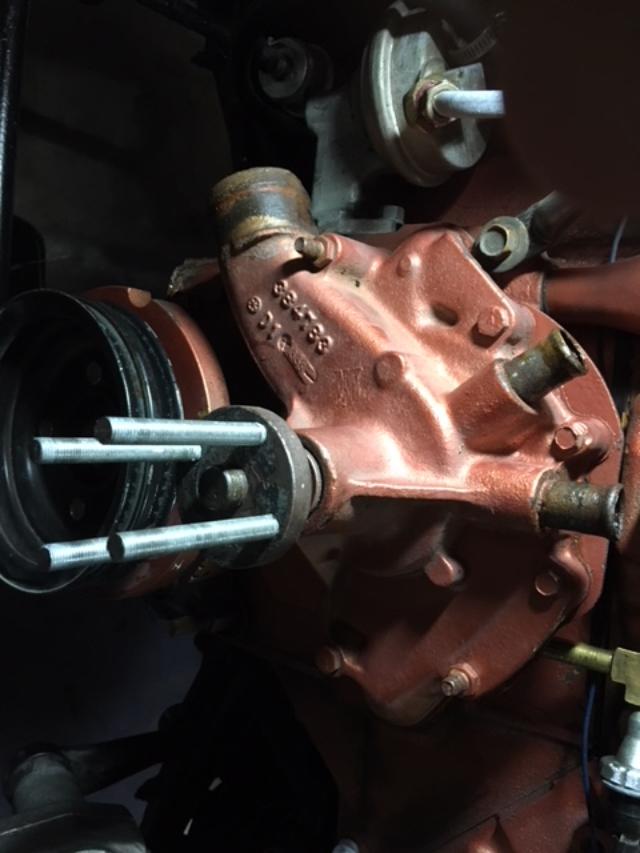 and we will be good to go. Here's a pic of the bad water pump with the super long studs in it. I'll hopefully