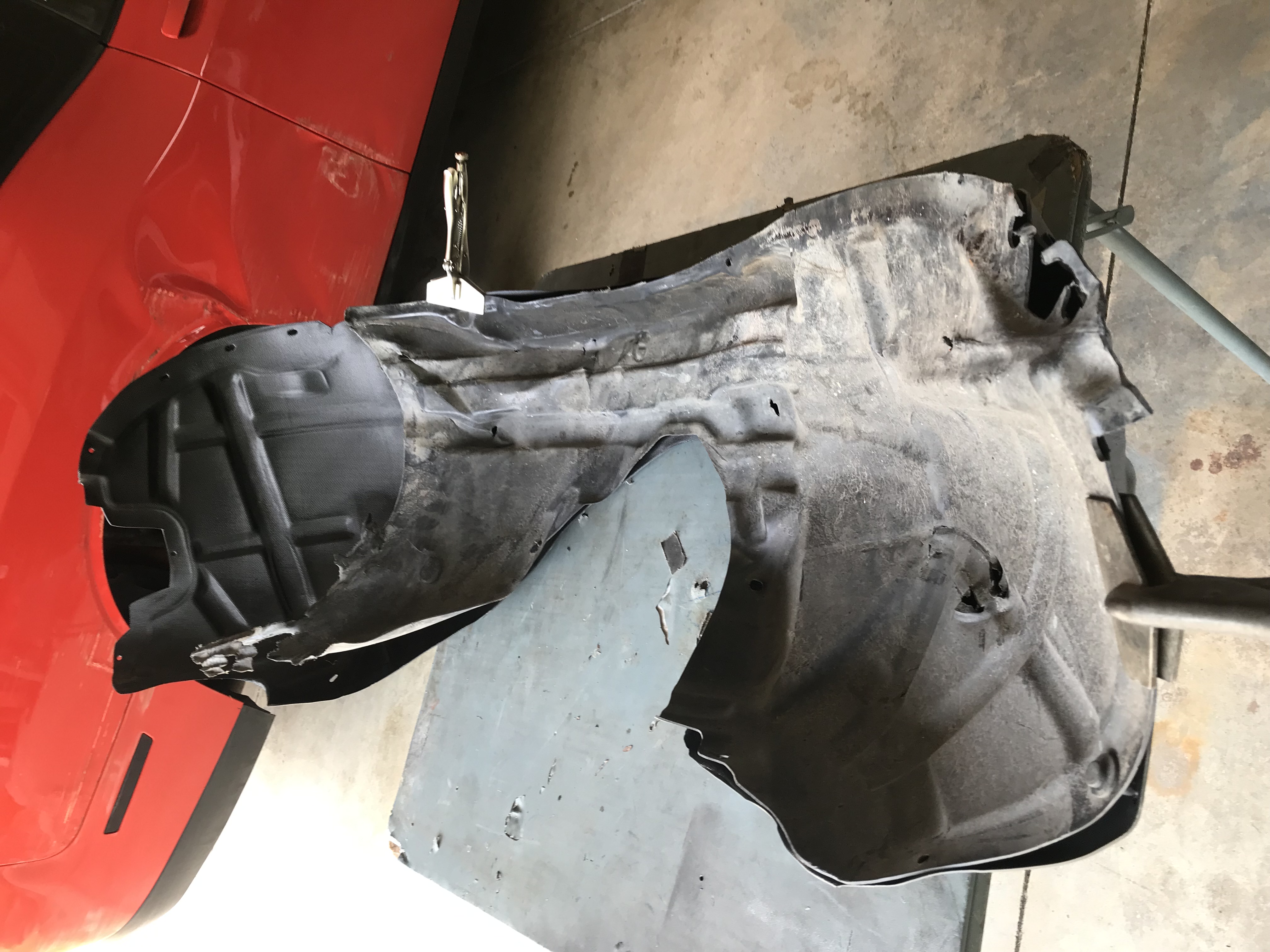why I needed a new LF inner fender - old laid on top of new