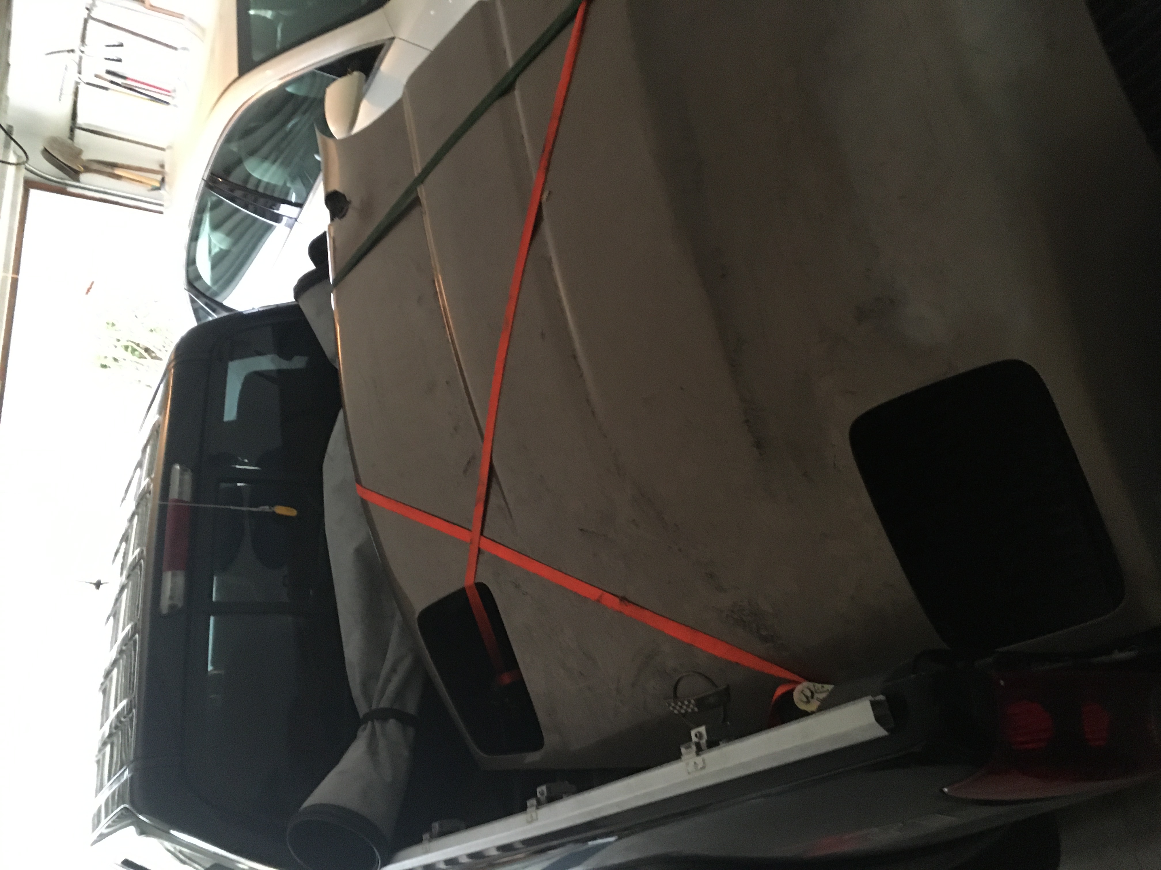 * Acquired a spare hood - it has a hole in it as often happens when the latch seizes up someone cuts a hole. It was cheap and I want to experiment with aero by cutting holes in it for improved cooling and reduced lift on the hood