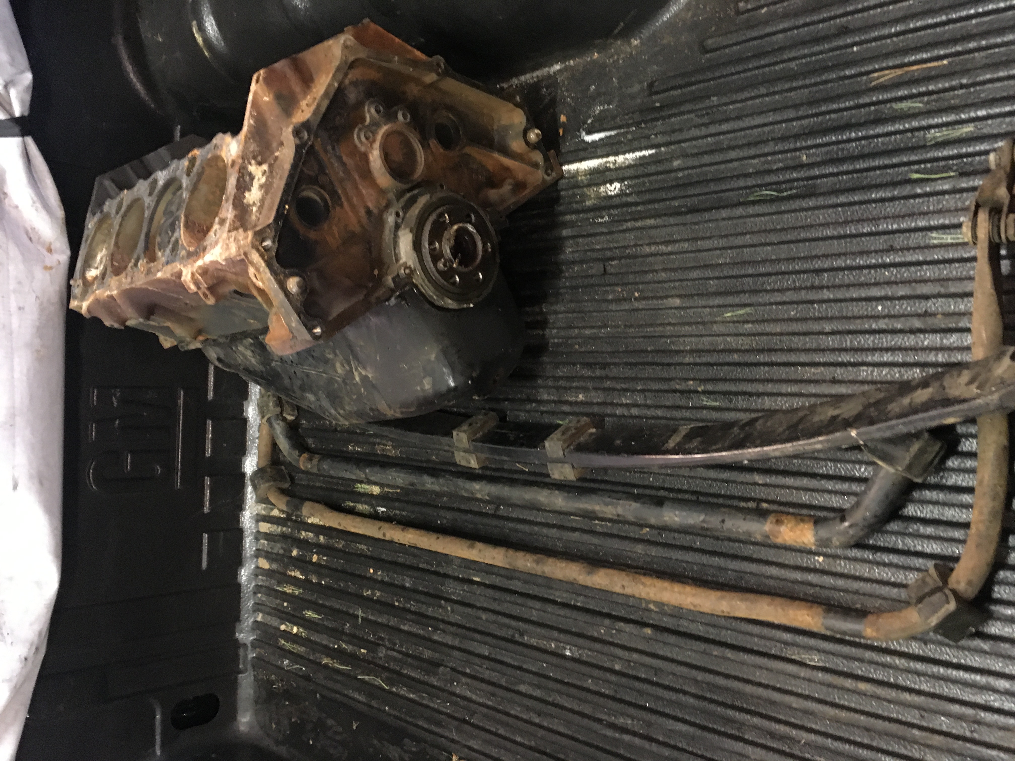* Acquired the rest of the engine where the heads/distributor came from. It was a flood car which seems to have wrecked the pistons but inside the crankcase was clean which means we have the roller cam, lifters, pushrods and other supporting hardware, oil pan, factory oil cooler, flex plate.