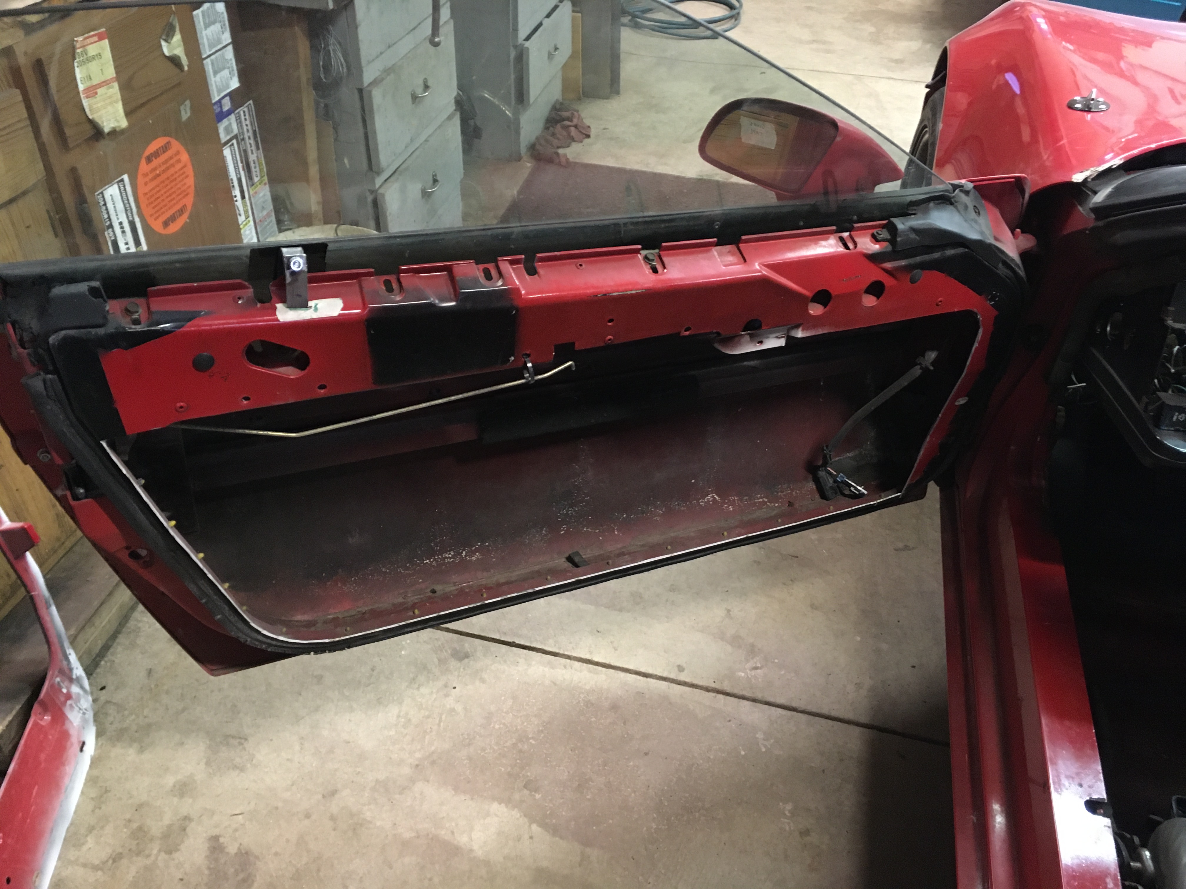 * removed the power window mechanisms and set up a method to install the windows for storage and driving around on cold days. The windows, mechanism and wiring was 37 lbs