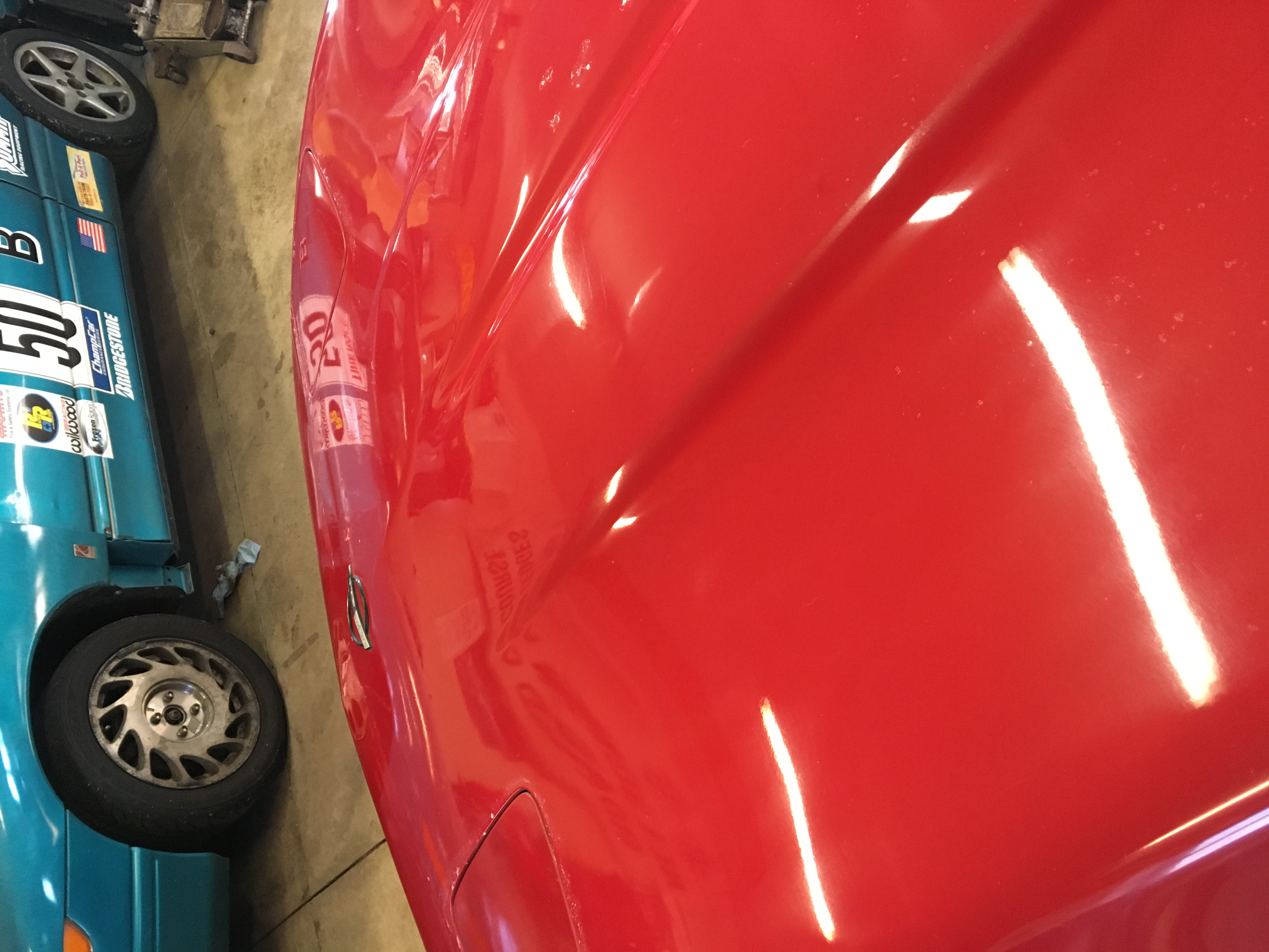 On the front bumper cover and the right rear, the clear was failing so I sanded it off with 320 and we buffed it with DRX-16 buffing compound