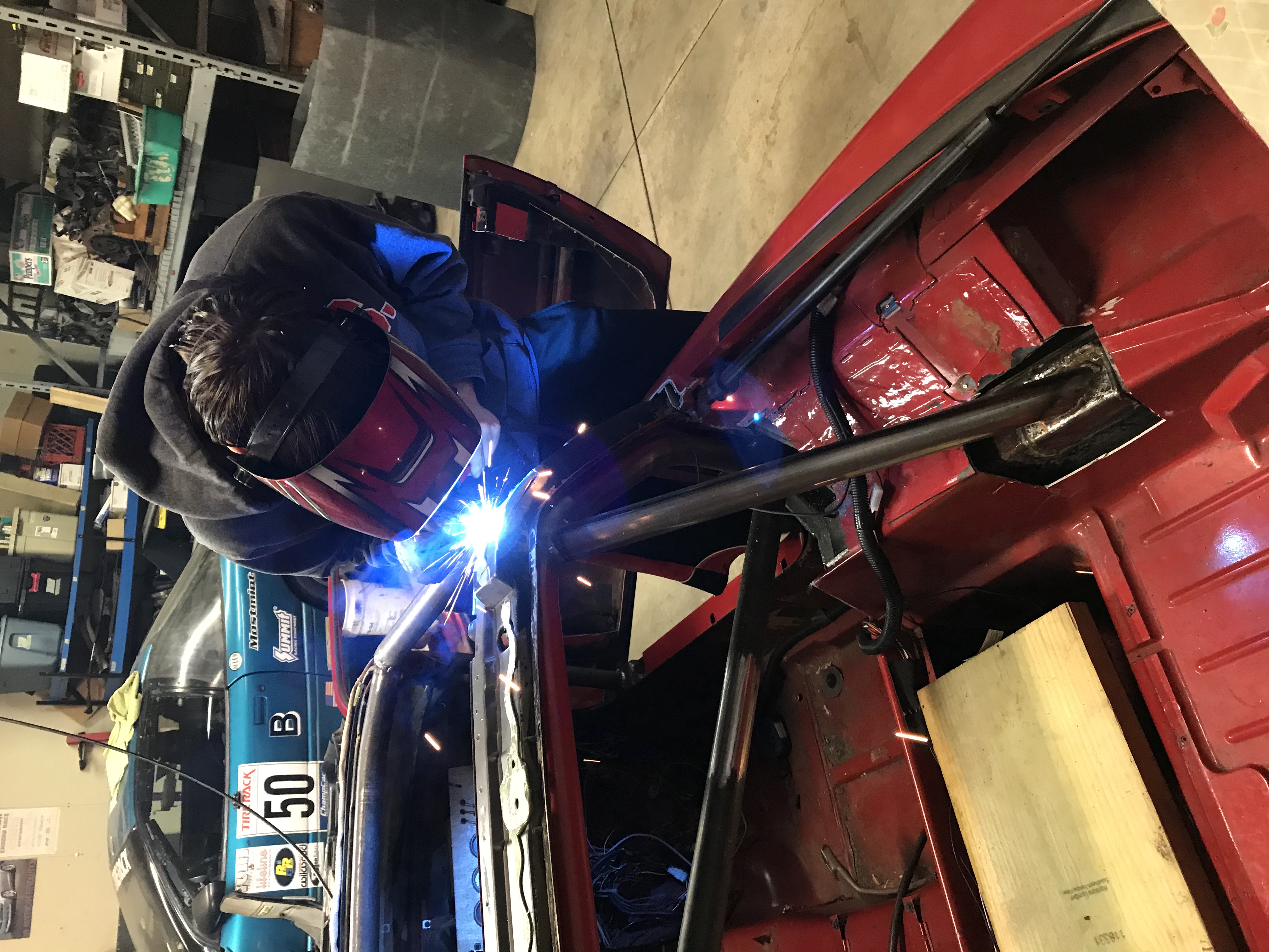 o Fabricated the car to fit the cage also about 2/3 done: Removed rear hatch, fabricated new attaching hardware to allow install with main hoop in place. Temporarily removed fiberglass panel covering the B pillars and top of factory main hoop – trim this panel to accommodate roll cage bars. Cut access holes in the main hoop to allow proper weld of roll cage bars, and subsequently welded them back into place