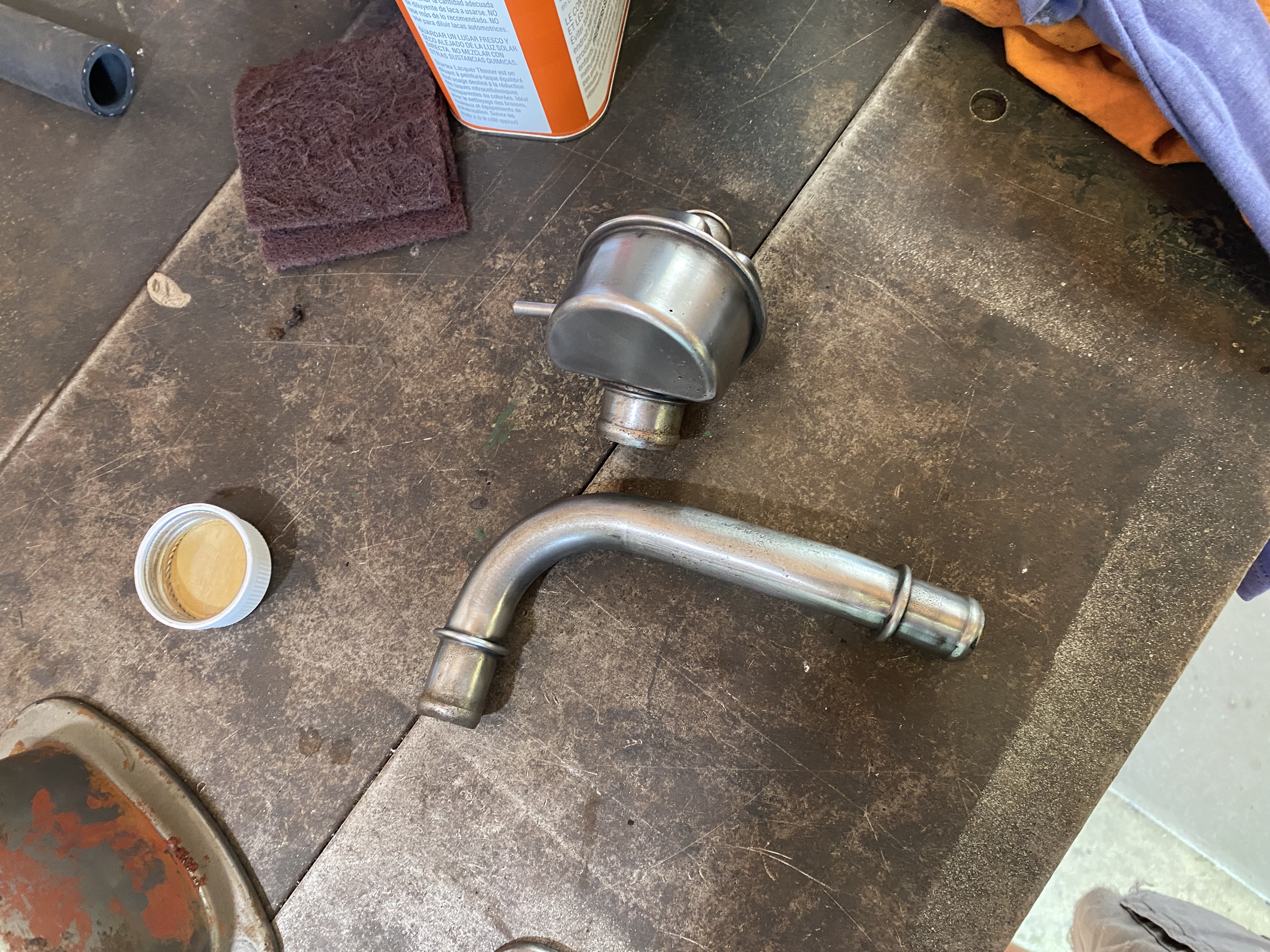 40,248 … Last August I purchased a pile of 425 parts from a guy and part of the deal was a set of factory steel valve covers. I’ve been working on this project for a few months now, obviously! I wasn’t a fan of the PCV system that was incorrect for the car and I was hating on the cheap chrome valve covers that always leaked. I opted for the factory set up over them. So, I stripped the valve covers down to steel, primed and painted them satin black. I purchased the correct breather that pushes in the valve cover and the tube and hose that connect this breather to the air cleaner. ( that part is NOT easy to find and isn’t repopped! It wasn’t cheap either ) That breather was all gunked up, but a week long soak in gasoline and some high pressure air got it working perfectly. It too received a paint job and now it looks new. Sunday, I spent the three hours to change out the valve covers. Sometime I’ve the winter, I used PermaTex to glue the new cork gaskets to the valve covers. The covers were easily installed with a new set of correct valve cover bolts. No leaks after a half hour test drive, so I’m putting this project down as done. If I take the time out to paint the motor, these parts will be correct and the valve covers won’t have to come off. To be noted was how clean the inside of the motor was. I’ve had many Oldsmobiles that had build up around the valve springs and rockers. These look as clean as the day they were installed.