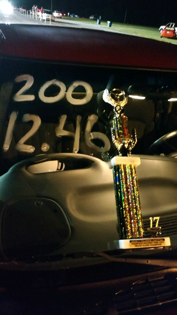 Yeah, Doug was a pretty nice guy with a sweet King Ranch Ecoboost F-150. I've had a 14 round win streak going. I know I haven't had that much success in a LONG time, if ever. Racing regularly does help. Every pass that was not on the brakes or letting off was between 12.50 and 12.47. That helps too. I know I've said it before, but I'm having so much fun with this truck. I went into Truck class last night for a change of pace, and I think it was a tougher class than stock, even though there were only four rounds. The first round was kind of a gimmie (she had .9xx light AND broke out), but the other three I had to be on my game. It was fun being the fastest guy in the class too, never having to turn around to see if I'm going to get caught or not.