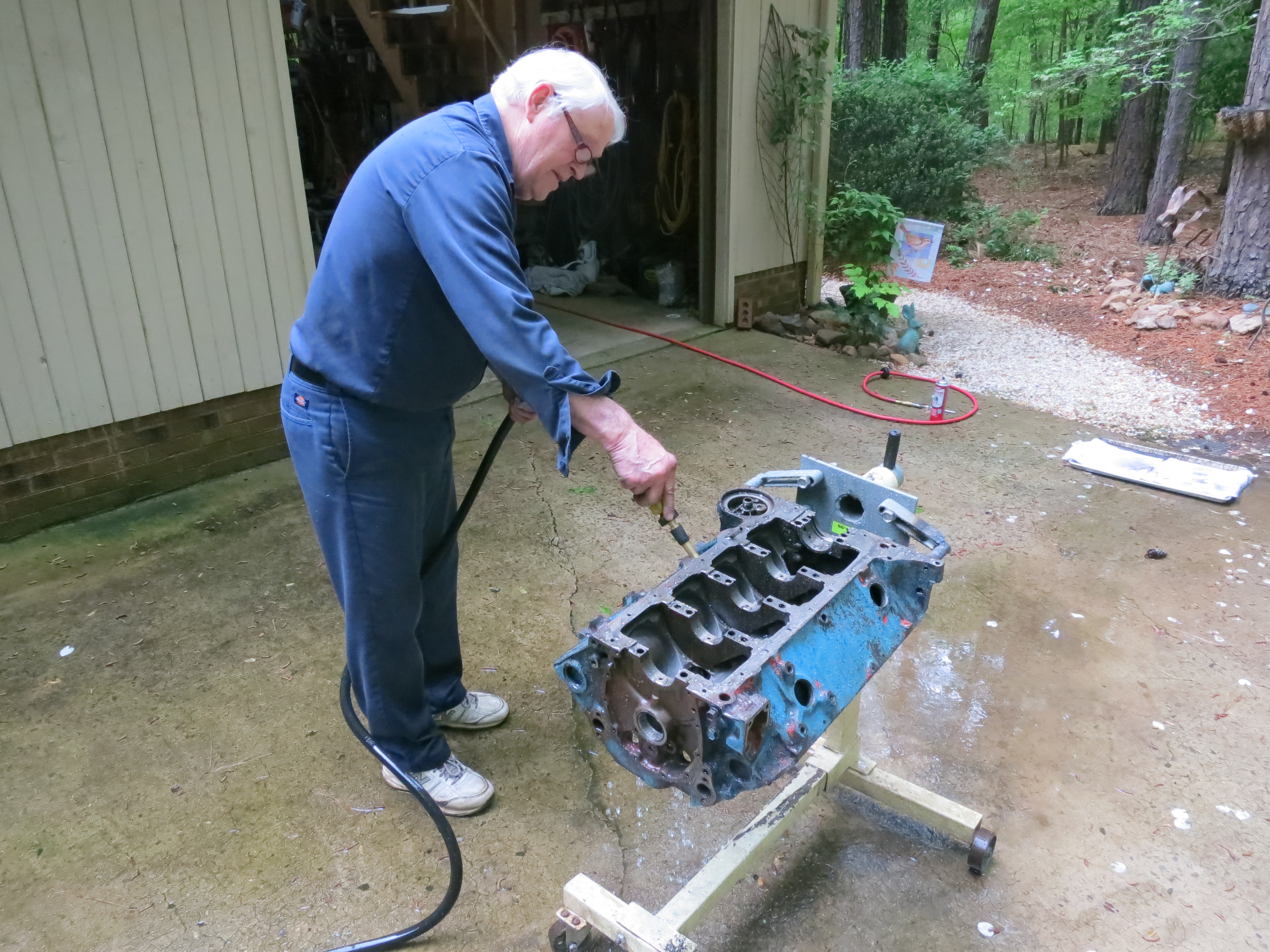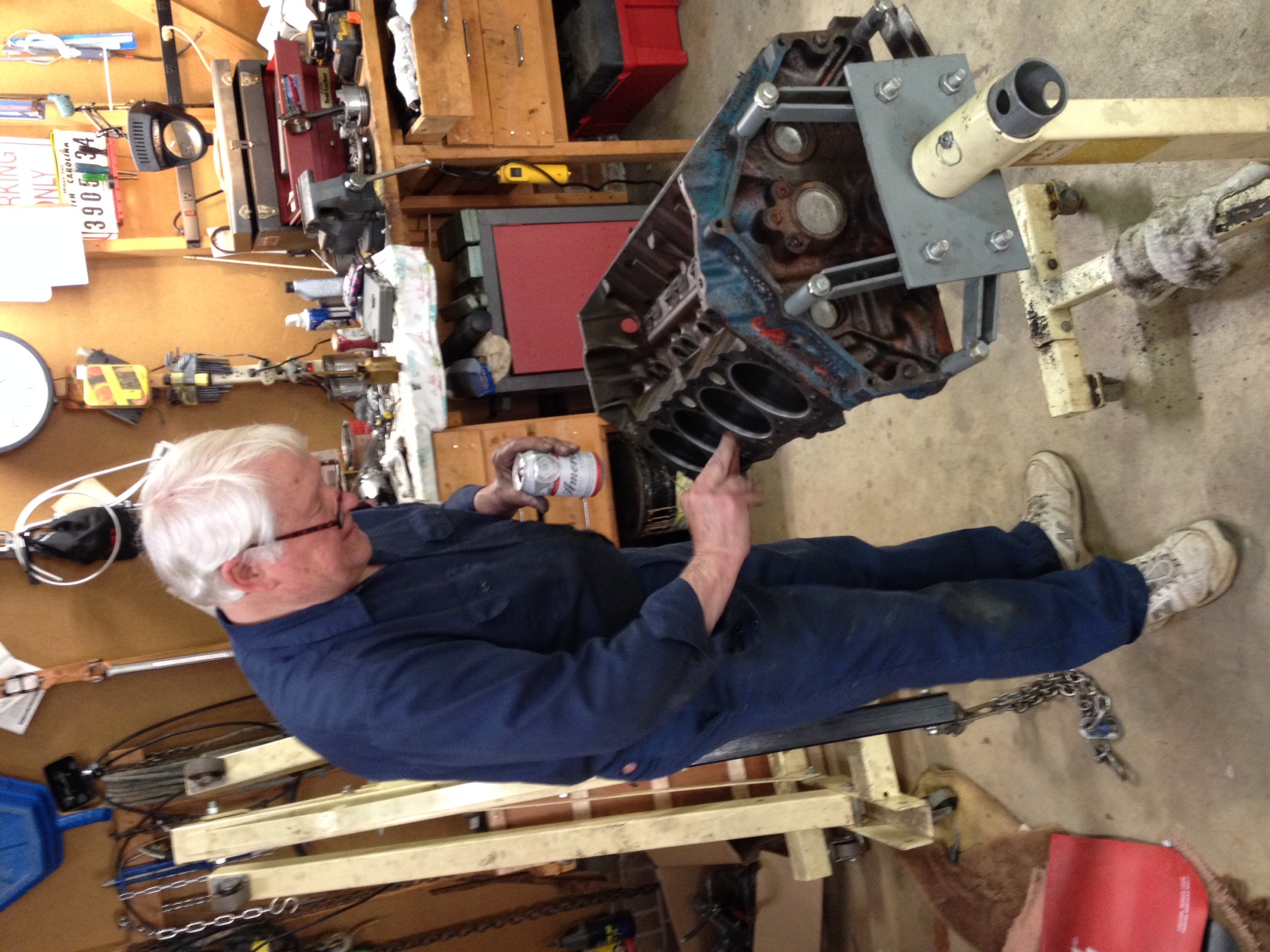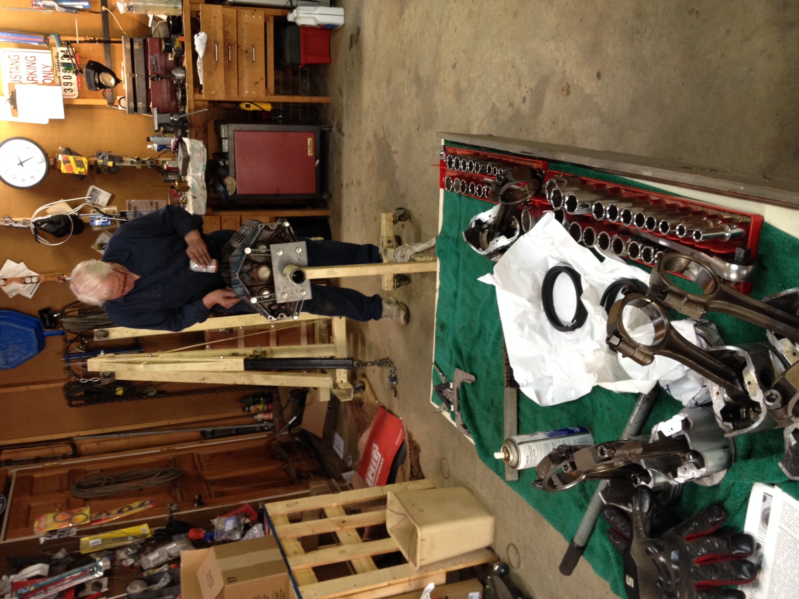 We had a work day yesterday. We had a pretty nice work space. Moved the Lincoln out of the garage and had the block on the engine stand and a sturdy table in the center.