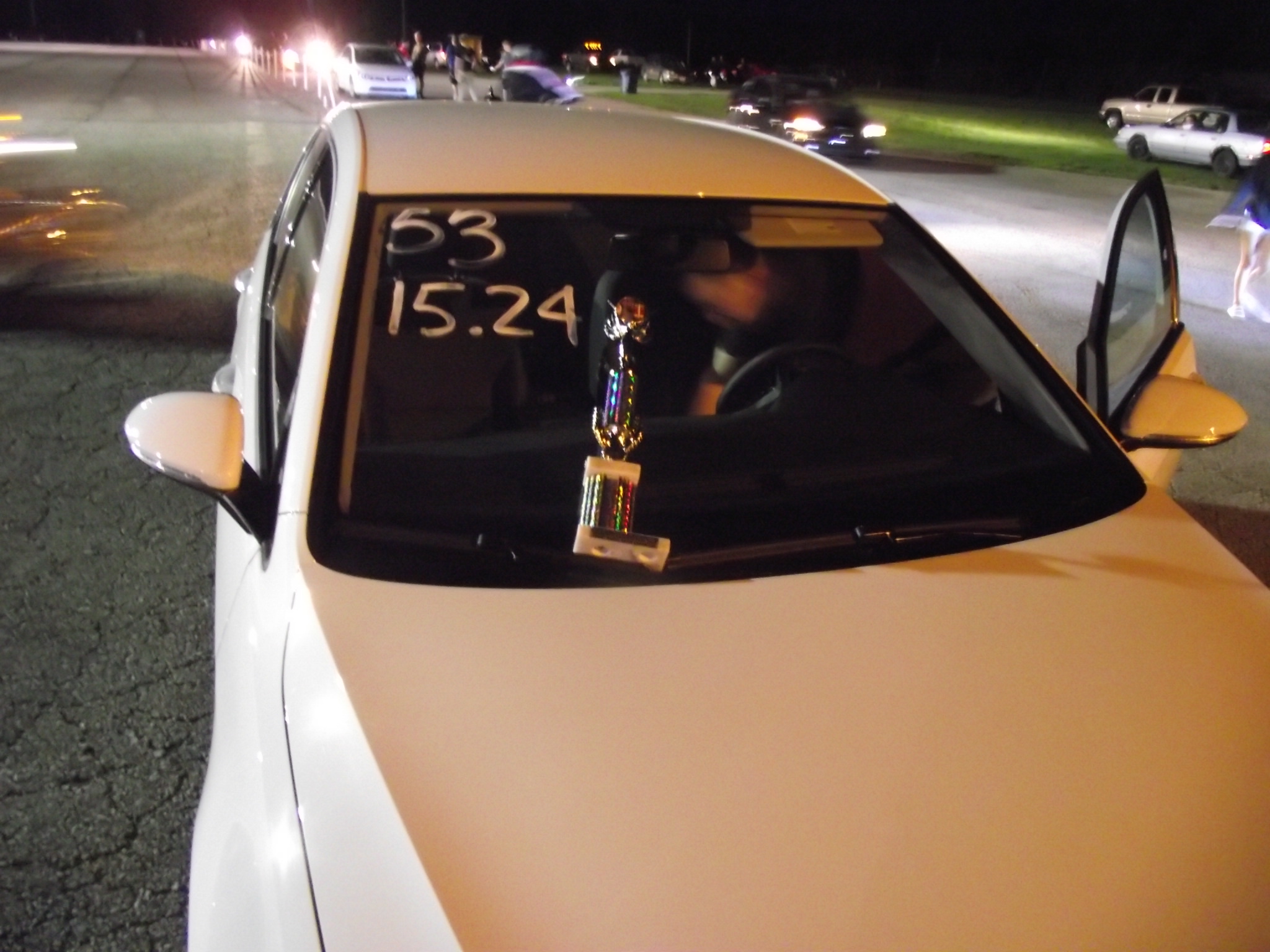 The heads up race with the Z71 was real fun. We were looking at each other laughing as we were sooo close. I had a little more top end. My best et of the night was in the finals where I was dialed in 15.24 and ran a 15.22 at 92.6mph with a light tap of the brakes just at the stripe. I'm guessing it wouldn't have been better than a 15.2 flat out. I was .02 under but the Civic ran a 15.29 on a 15.35 dial, so I was gold. It was a five round win with the bye in the semi-finals. I was on the brakes on every pass except the first round where an early redlight for the competition gave me a free run, which was good because I learned that if you brake torque it for too long, it cuts your throttle and takes it down to almost idle. After learning that, I had to change by staging technique. Electronic nannies...