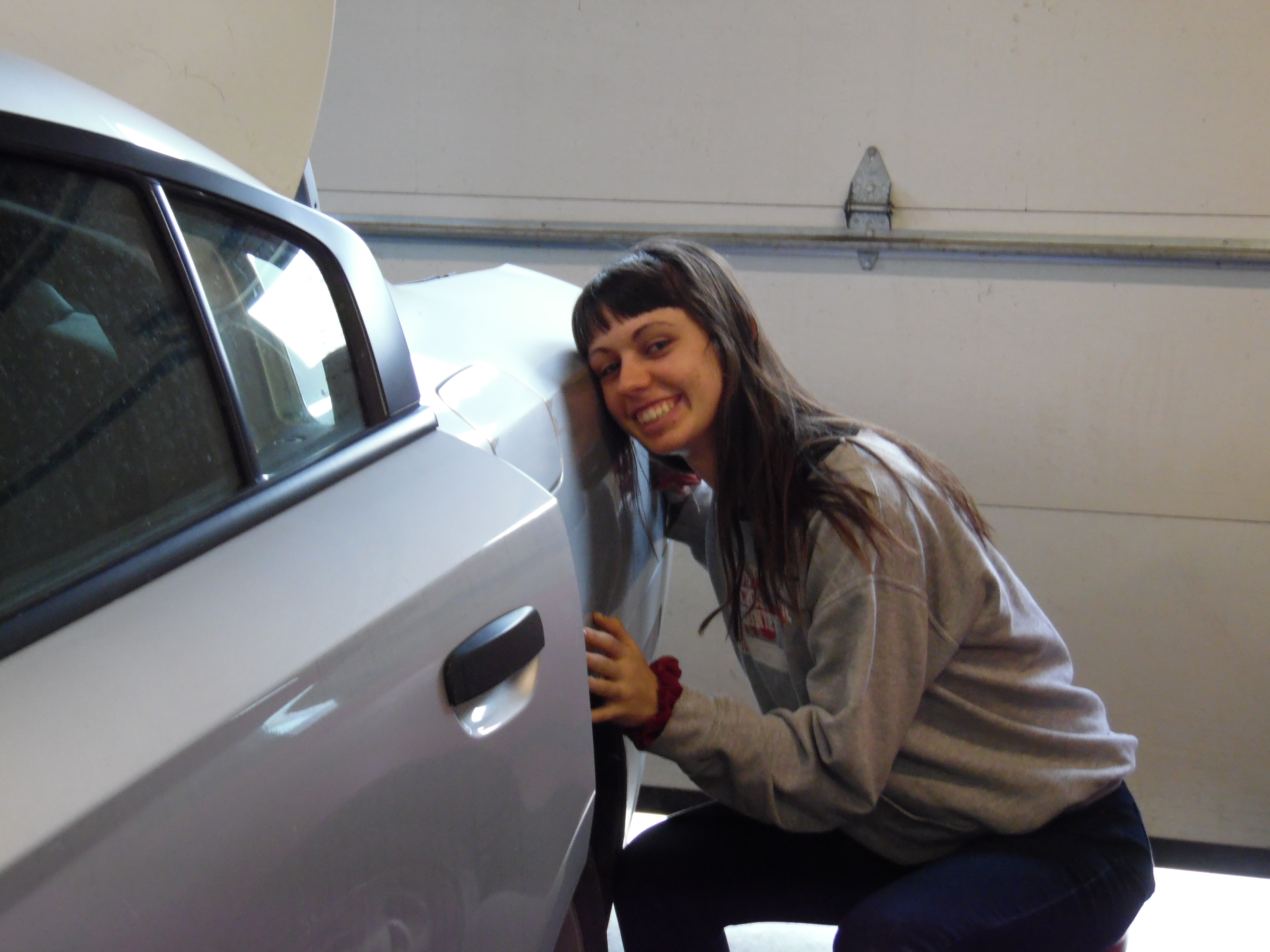 Rachel was over and helped cleaning leftover sticker glue from all over the car. She also had the chance to drive the car for the first time today.