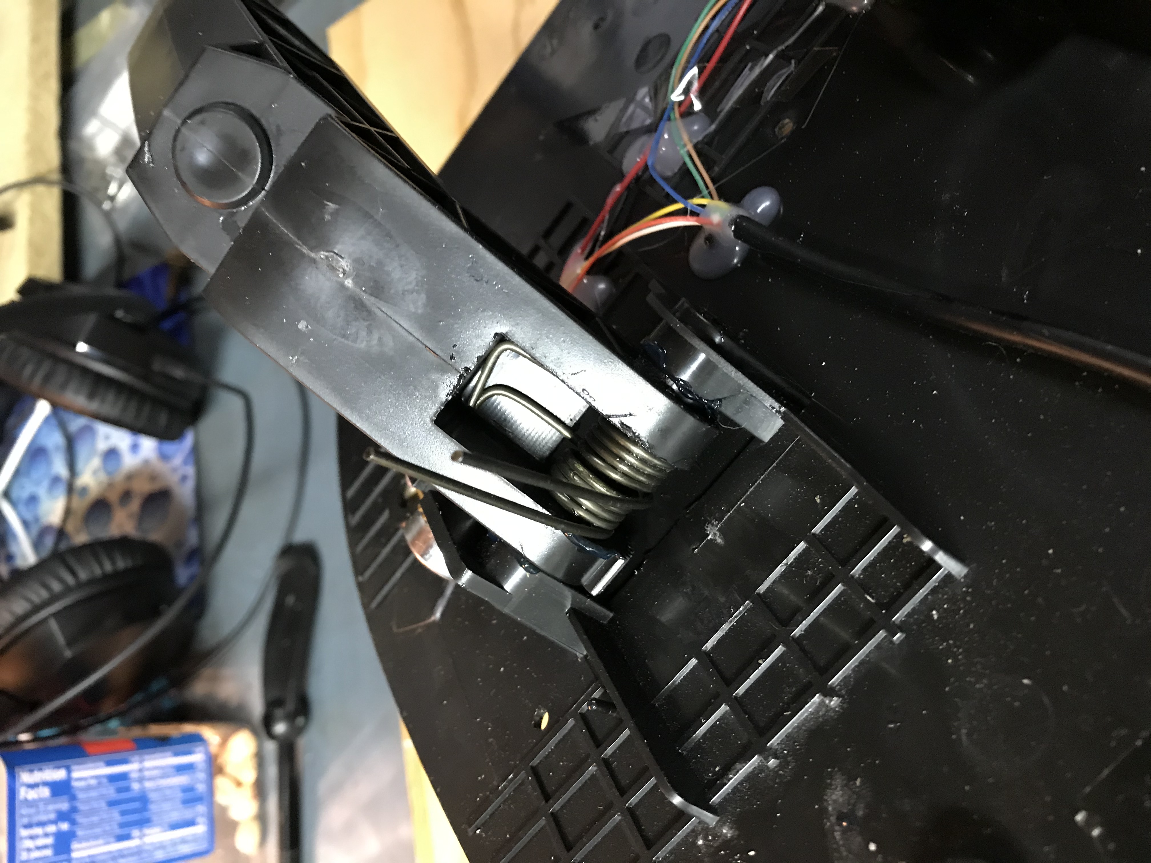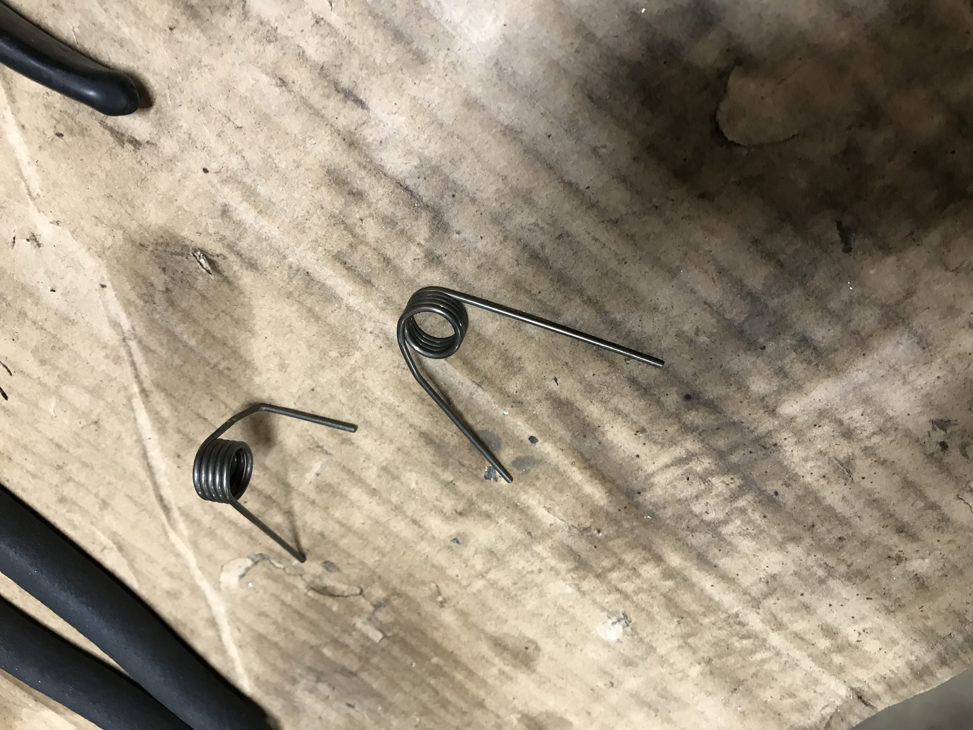 - Option 2: Get a replacement torsion spring and configure it to work with this unit. The original has .090" diameter wire, the loop is .505" outside diameter and something close to .305" inside diameter, and the arms are 1" long and in 45 degree configuration.