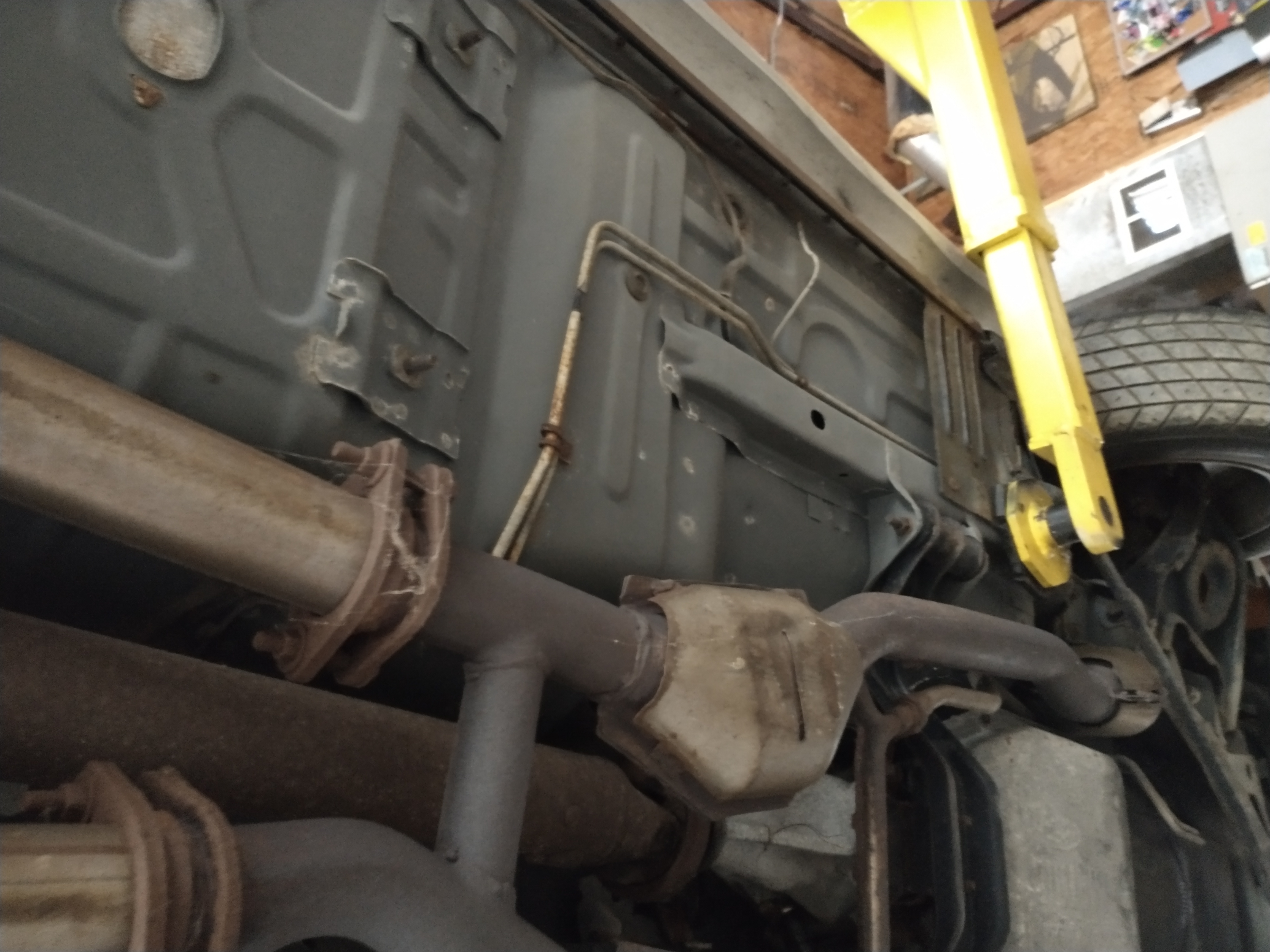 I delivered this car a week or so ago to Kevin's garage to get it running for me. He removed all the security system wiring and was able to get the car to fire on ether. He deemed the fuel pump dead so I ordered a new one, but when he pulled the fuel tank, he found a rusty mess. So I ordered a new tank and a different, complete fuel pump assembly, a fuel filter, and some fuel line to replace a broken piece outside the tank.