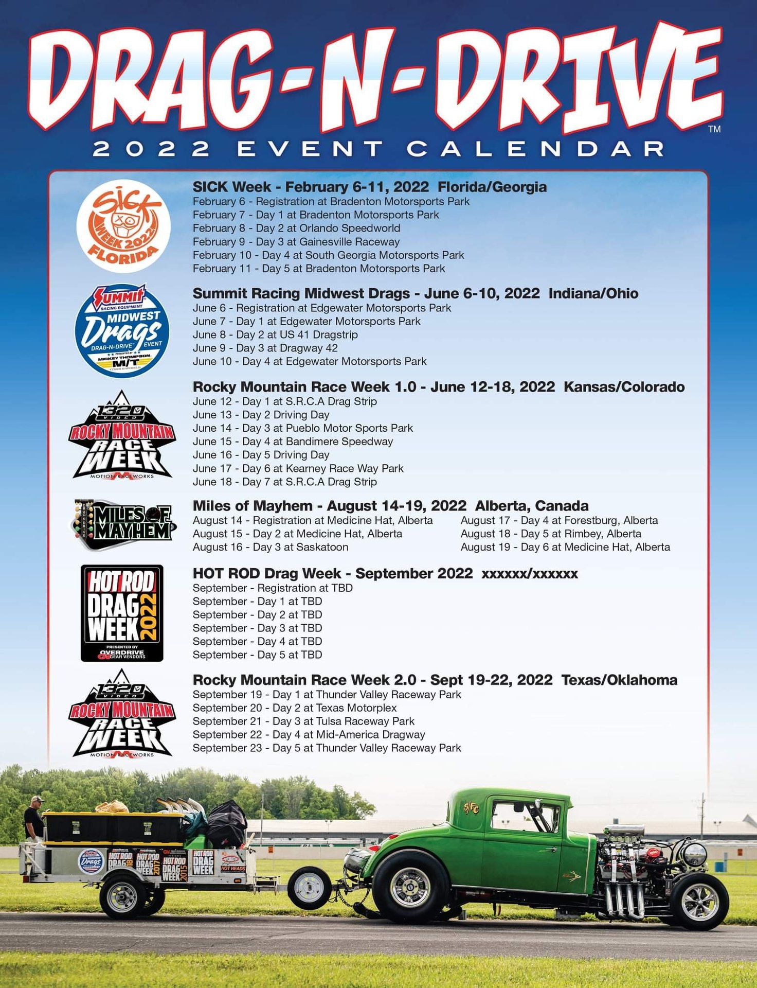 Hot Rod Drag Week was just in the Midwest this past year, so not sure where it'll be this year.